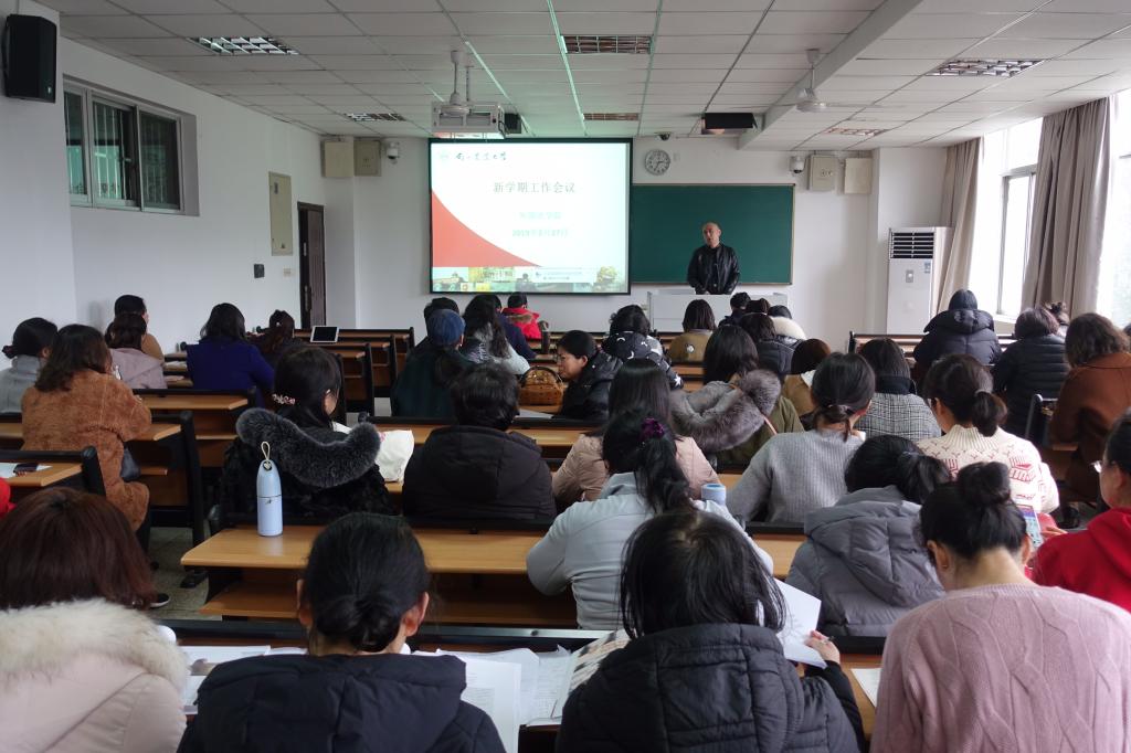2月27日下午,新葡的京集团8814新学期工作会议在教学楼B222举行。全体院领导及教职员工参加会议,会议由副院长游衣明主持。