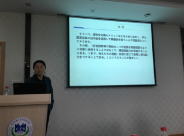 5月6日下午,继田原老师的系列讲座后,新葡的京集团8814“日语系建设交流报告会”第三次会议在教学楼A310顺利召开。此次报告会特别邀请了田原老师出席,由日语系副教授金锦珠老师以「多言語社会における日本語教育」为题作了报告。报告会由石碧老师主持,学院日语系教师及部分研究生参加。金老师以中国的多语种社会状况为引子,汇报了面临转型的日语现状,探讨了在先进的语言习得理论之下,如何开展日语教育,培养出符合教育部大纲要求的日语人才。金老师的报告,引用了很多实例,生动地反映了日语教育的现状和问题,其中肯的建议对新葡的京官网师生今后的科研教学工作有重要指导意义。